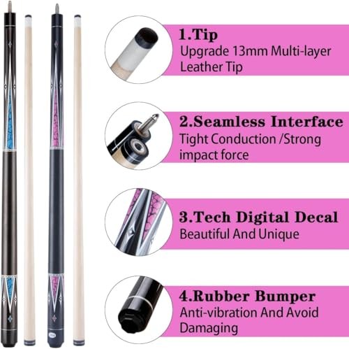 48 Inch Short Pool Cue Stick for Beginners, Canadian Maple Billiard Cues Set 2