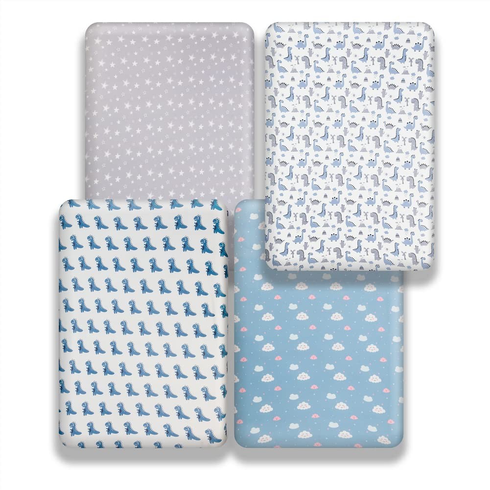 4 Pack Soft Baby Boy Crib Sheets for Standard Crib Mattress Dinosaur Star Clo...