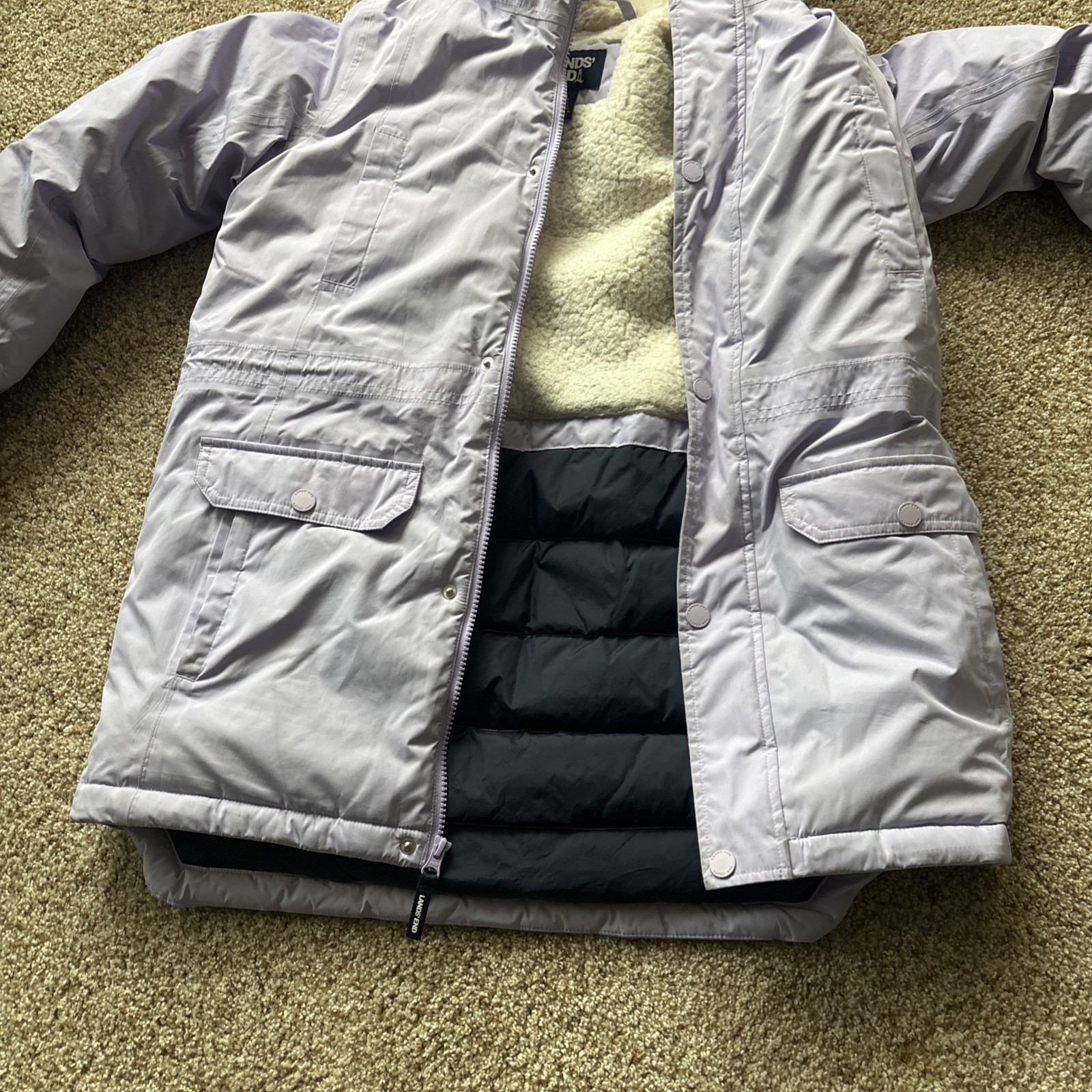 как выглядит Lands End Kids Expedition Waterproof Winter Down Parka Lavender Cloud XL 14-16 фото