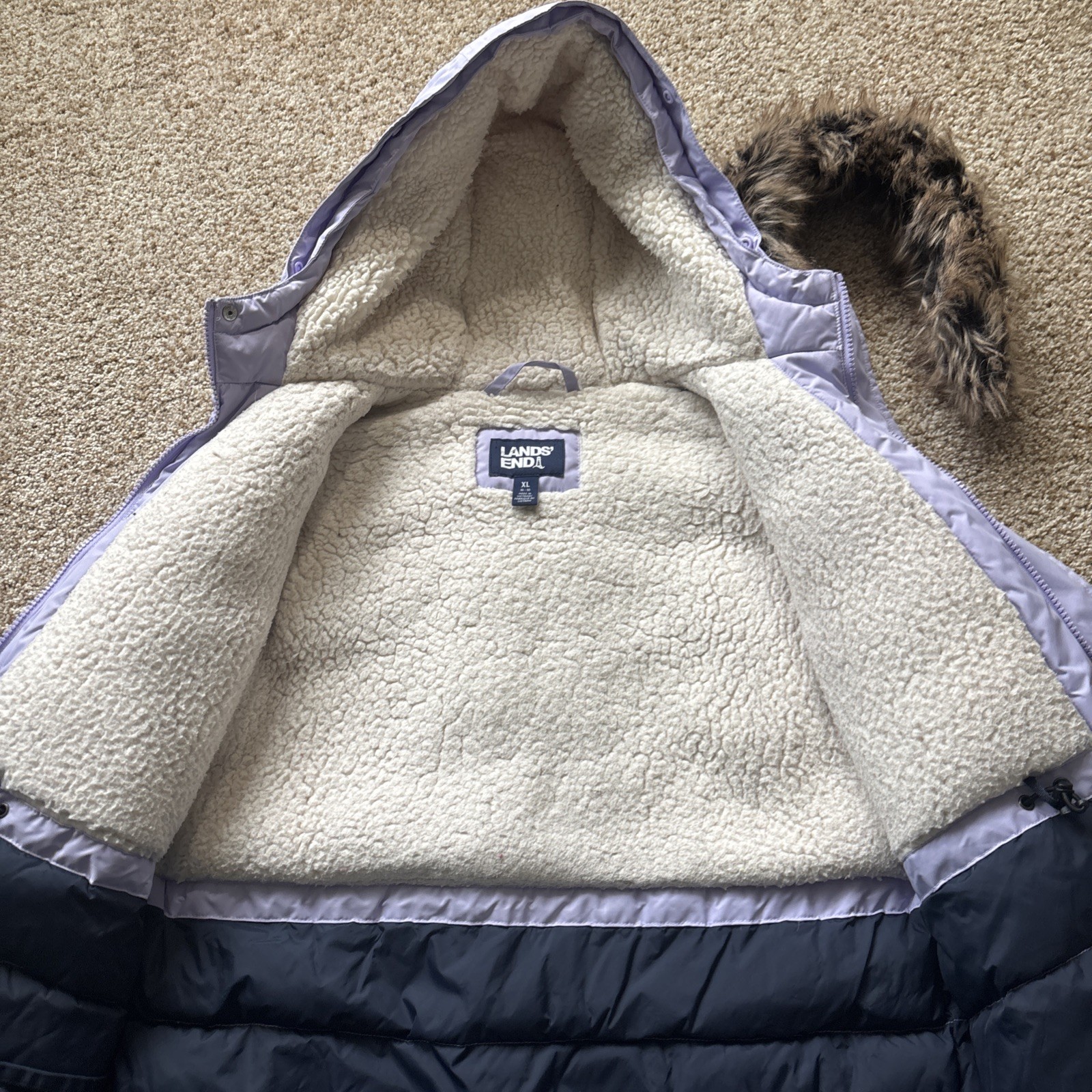 Lands End Kids Expedition Waterproof Winter Down Parka Lavender Cloud XL 14-16