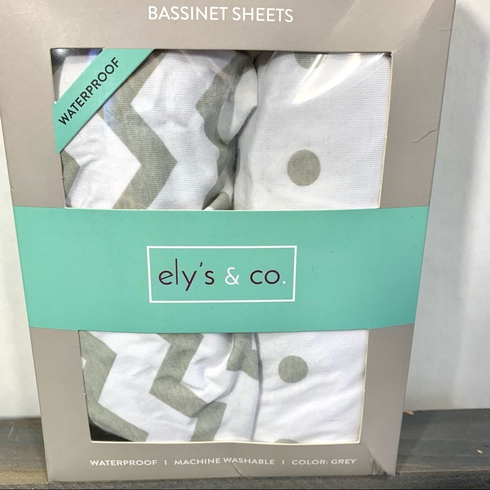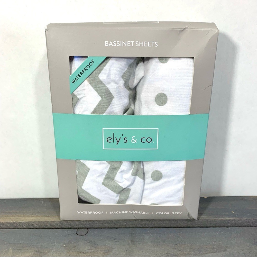 New In Open Box Ely's Co Gray White Waterproof Bassinet Sheets