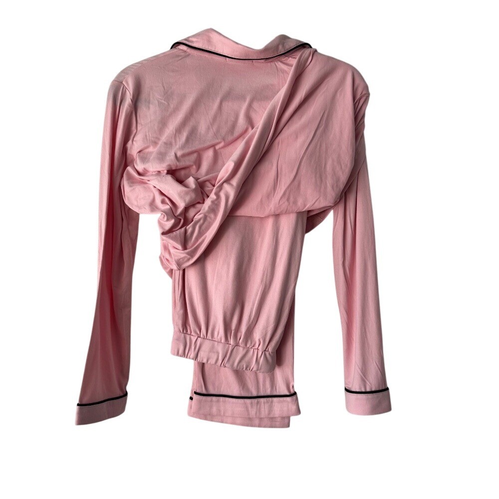 EKOUAER Pajama Top Sleepwear Button Down Long Sleeve Pink Black Trim