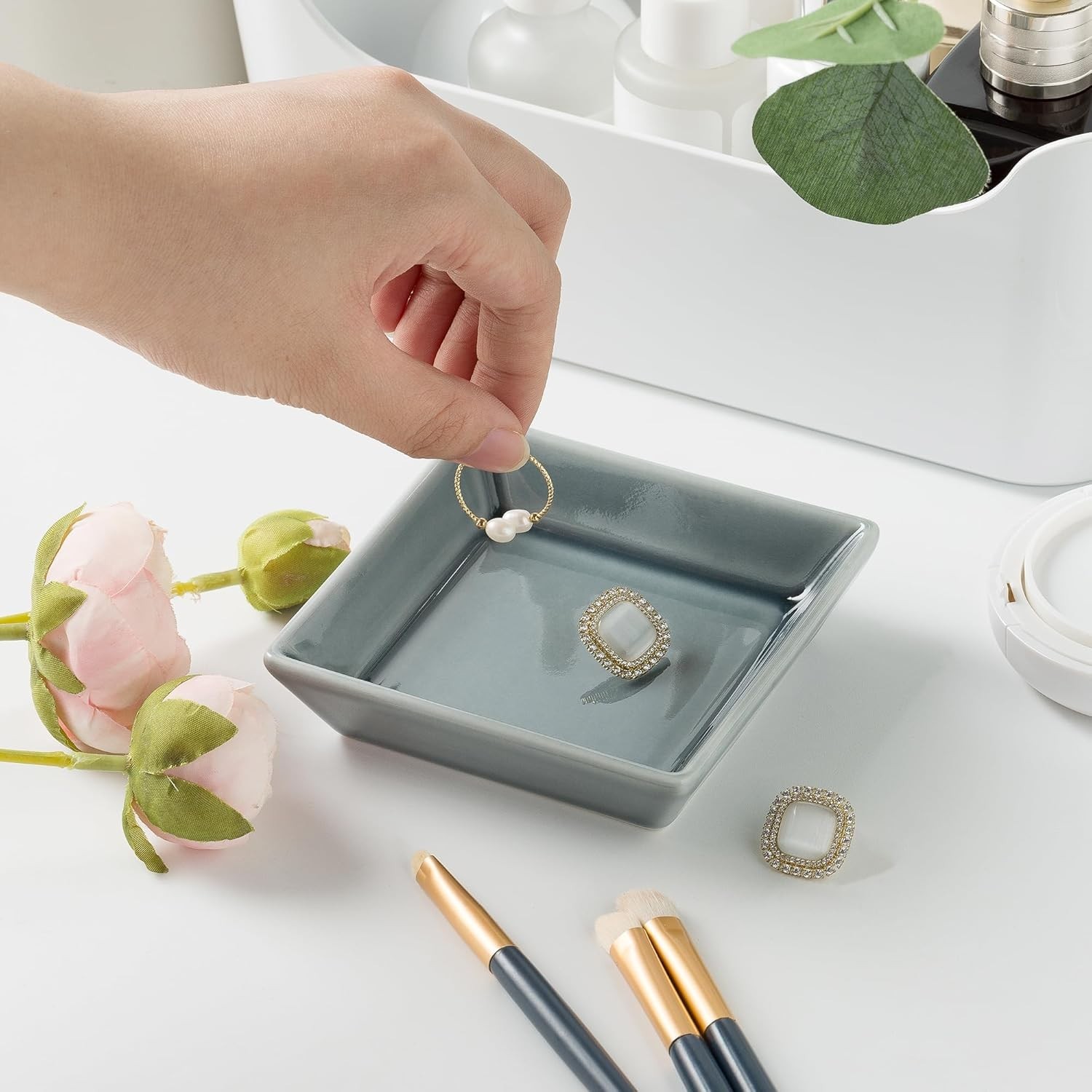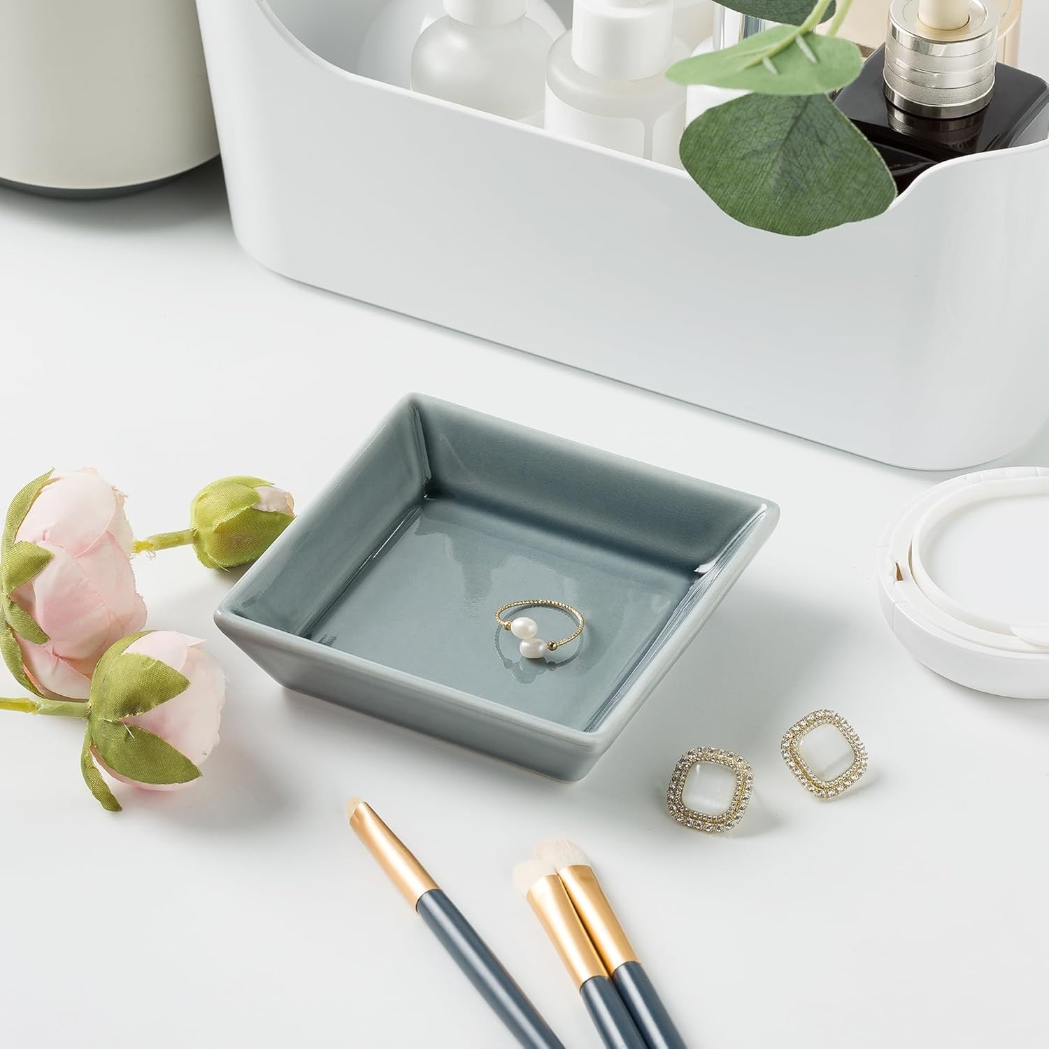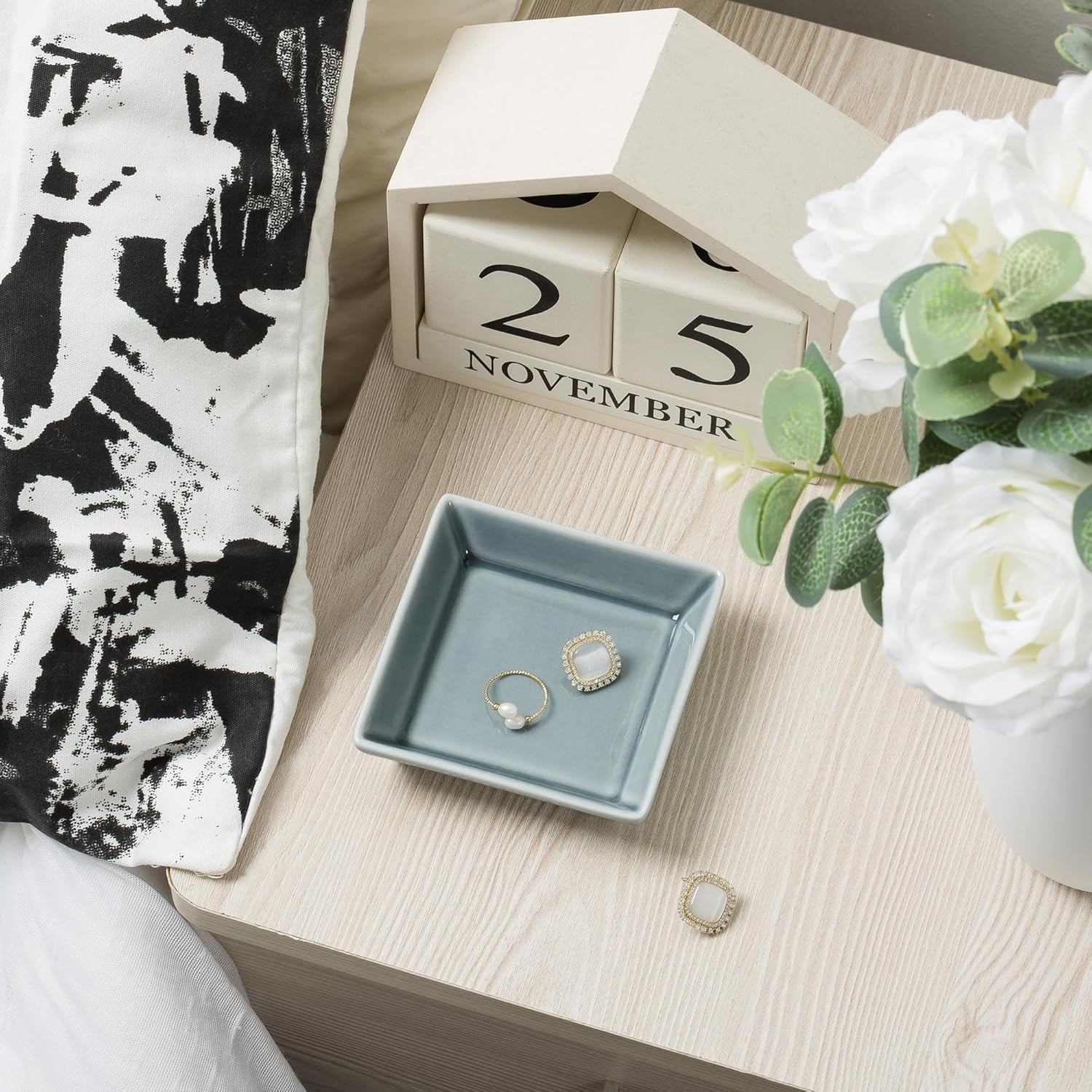 Modern 4x4in Blue Ceramic Jewelry Tray Decorative Storage for Rings Earrings