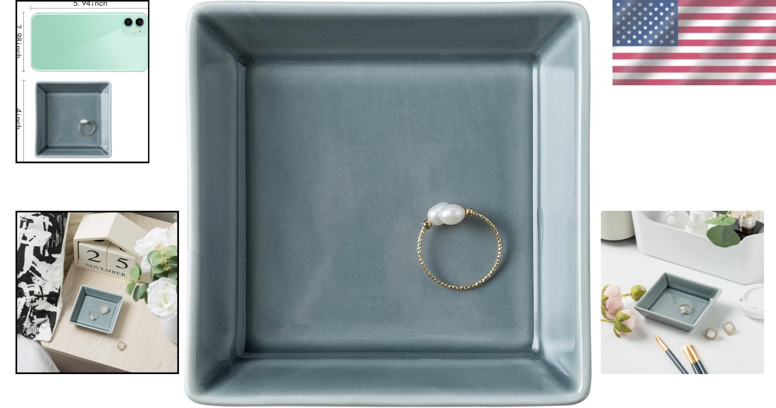 как выглядит Modern 4x4in Blue Ceramic Jewelry Tray  Decorative Storage for Rings Earrings фото