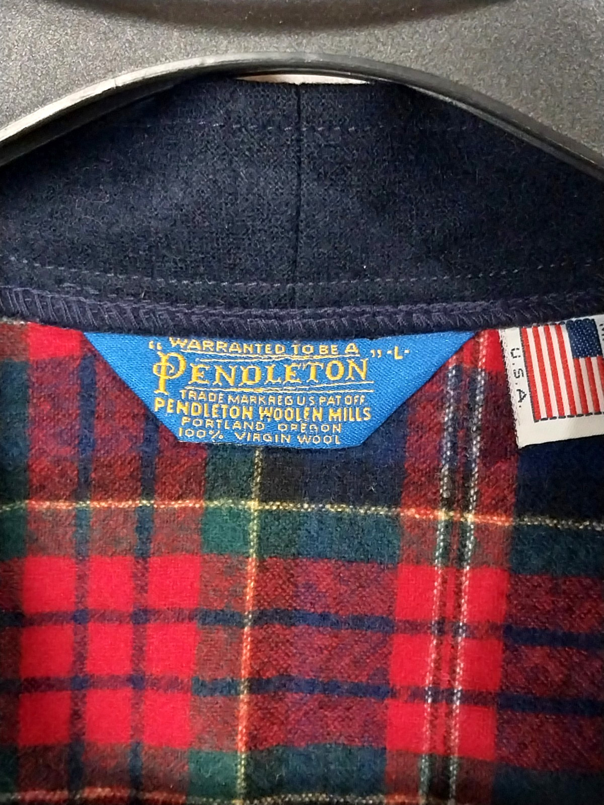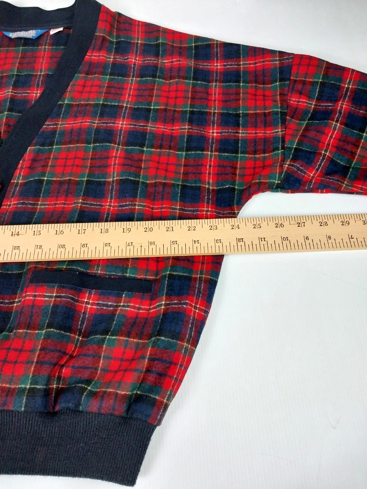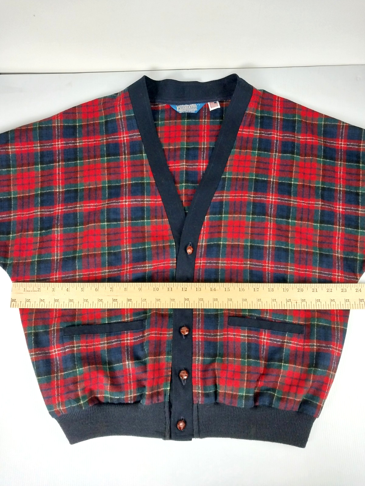 Vintage Pendleton Virgin Wool Knit Banded Cardigan Sweater Plaid USA Men's Large