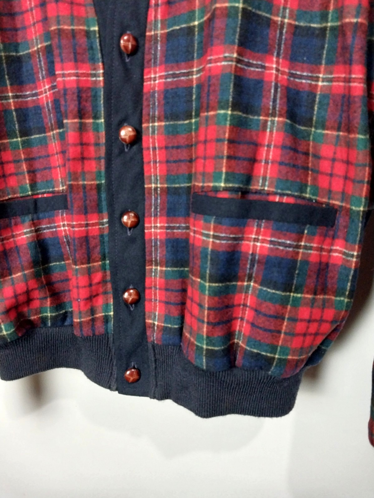 как выглядит Vintage Pendleton Virgin Wool Knit Banded Cardigan Sweater Plaid USA Men