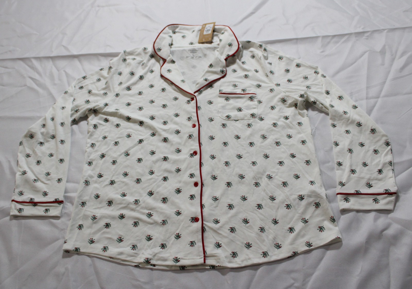 Primark Women's Festive Printed Boyfriend Pajamas Set JT8 White Small/Large