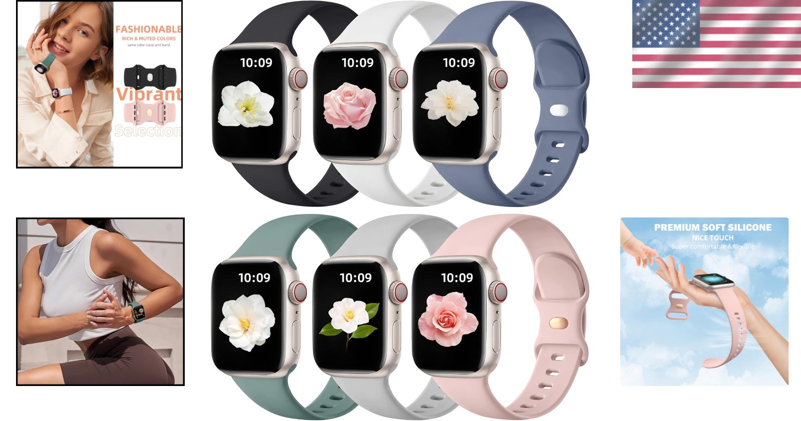 6 Pack Silicone Sport Watch Bands for Apple Watch - Black, Blue Gray, Gray, P...