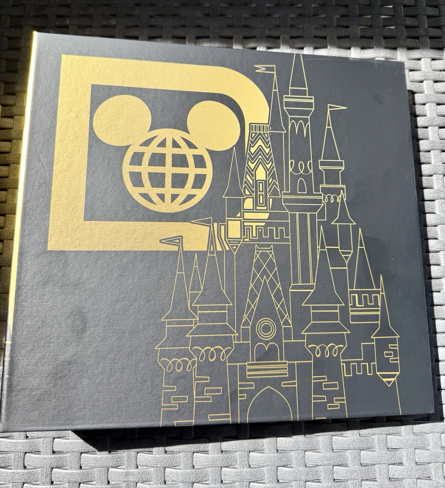 как выглядит Walt Disney World Magic Kingdom Black Gold Icon Photo Album NEW Holds 200 Pics фото