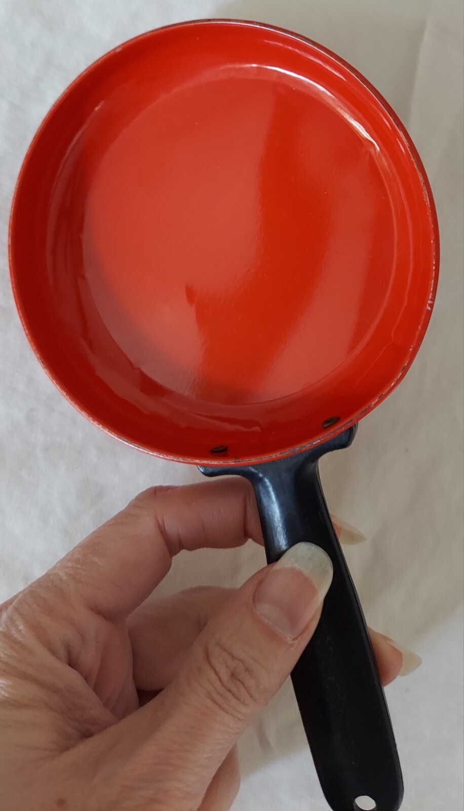 как выглядит Vintage 1970- 1980s Red Metal Kitchenware Play Set Pans Plates Made in Hong Kong фото