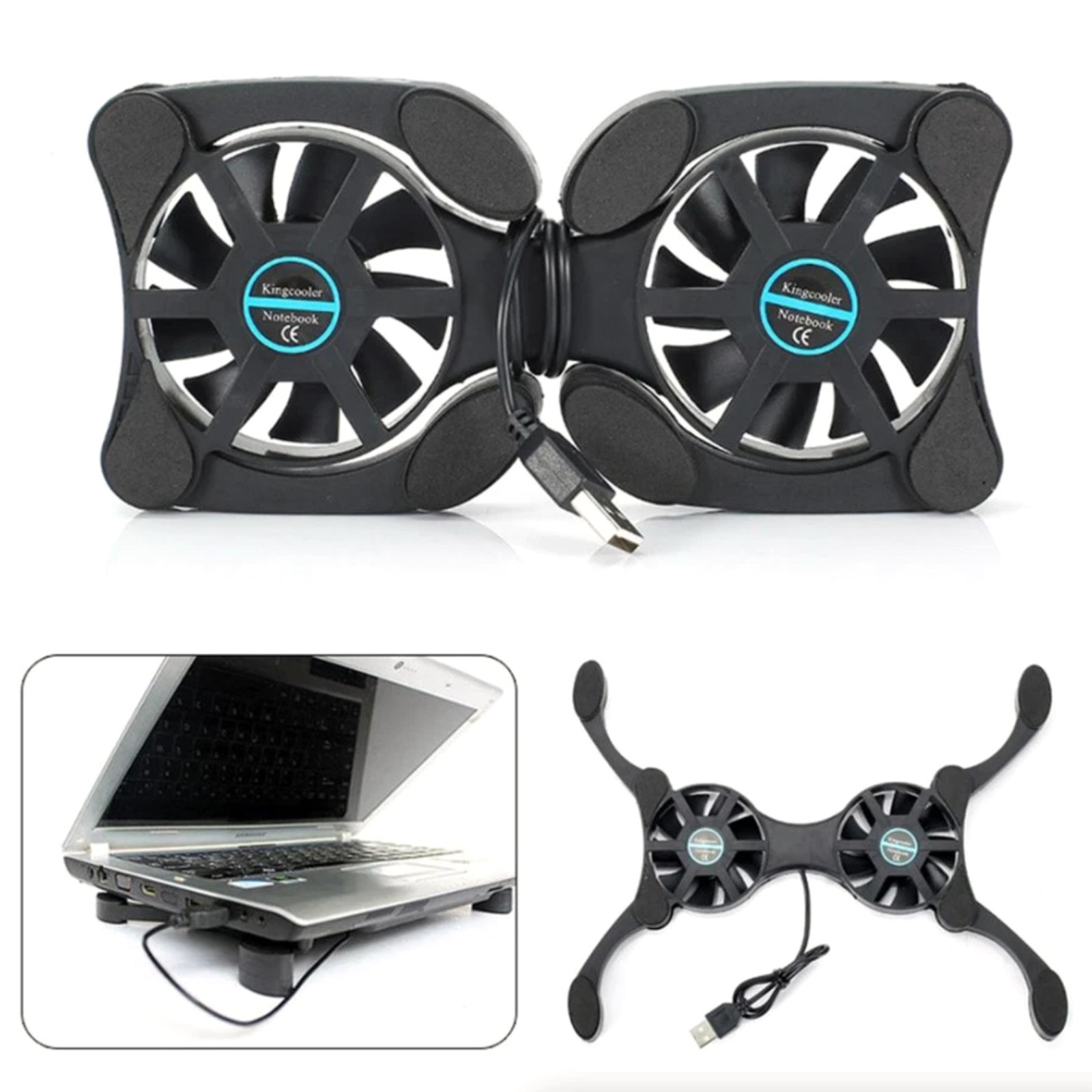 как выглядит Dual USB Fan Laptop Cooling Pad Stand Foldable for 7-15 Inch Notebook Black фото