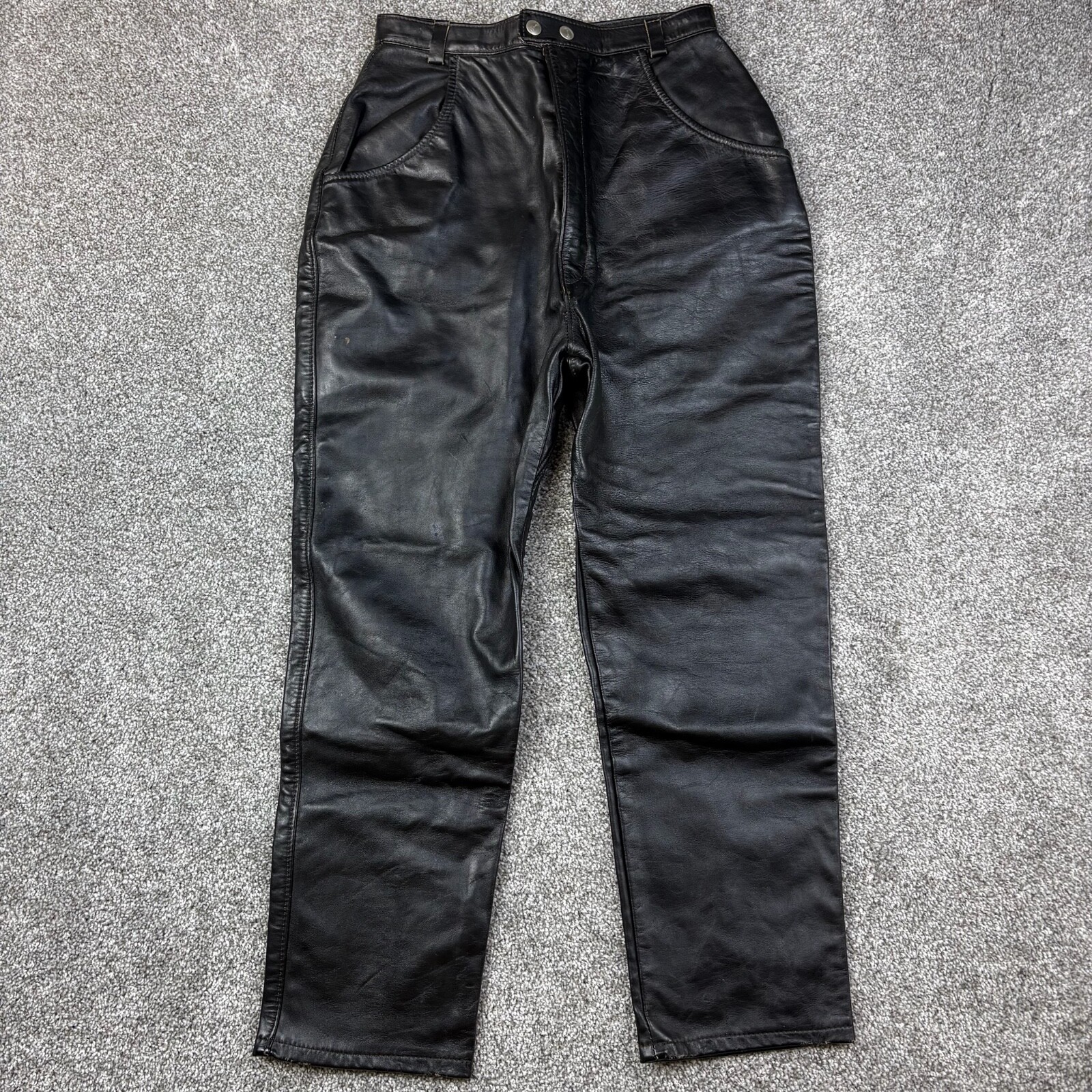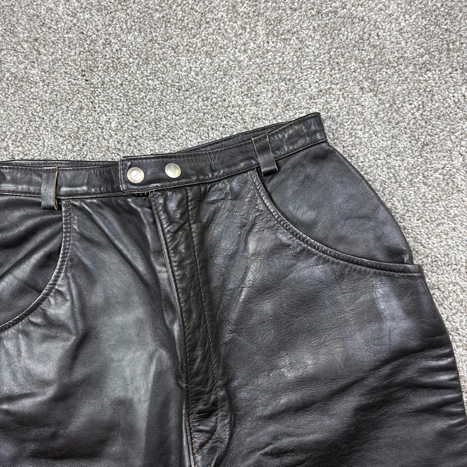 как выглядит Vintage Brooks Leather Pants Womens 16 Black Heavy Motorcycle Biker Detroit фото