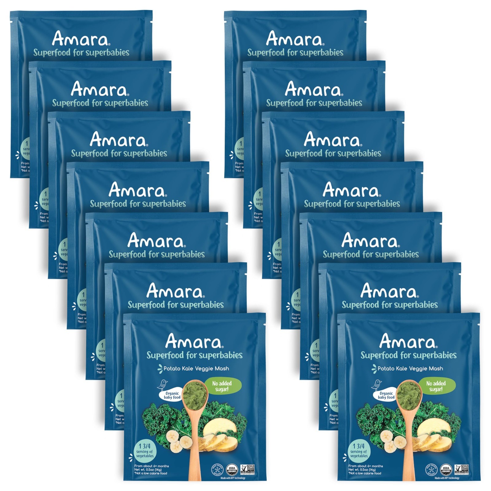 Organic Baby Food Pouches - Stage 2 Kale Potato Cereal Mix - 14 Shelf Stable Pac