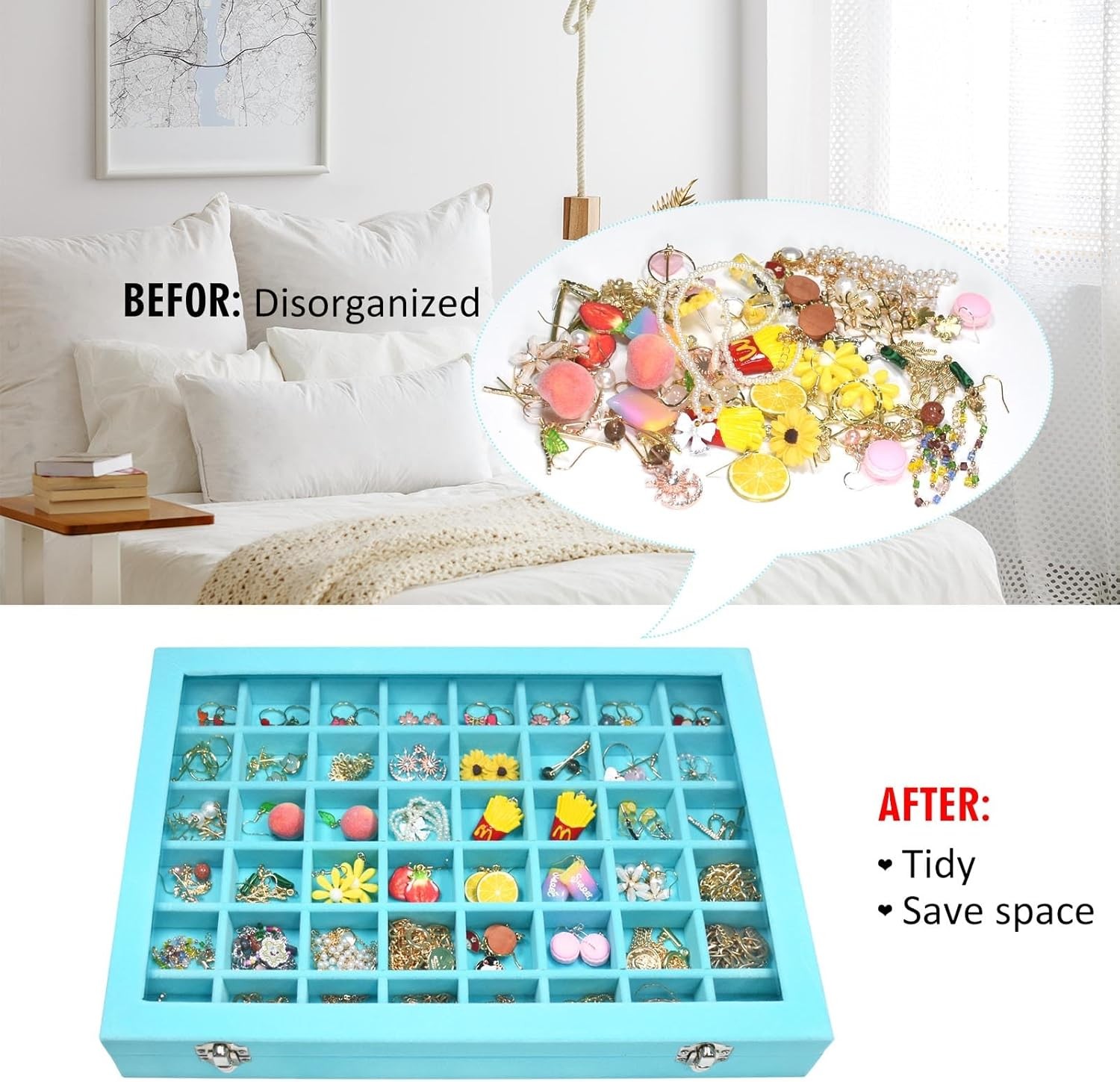Velvet Jewelry Tray 48 Compartments Jewelry Display Organizer with Transparent C