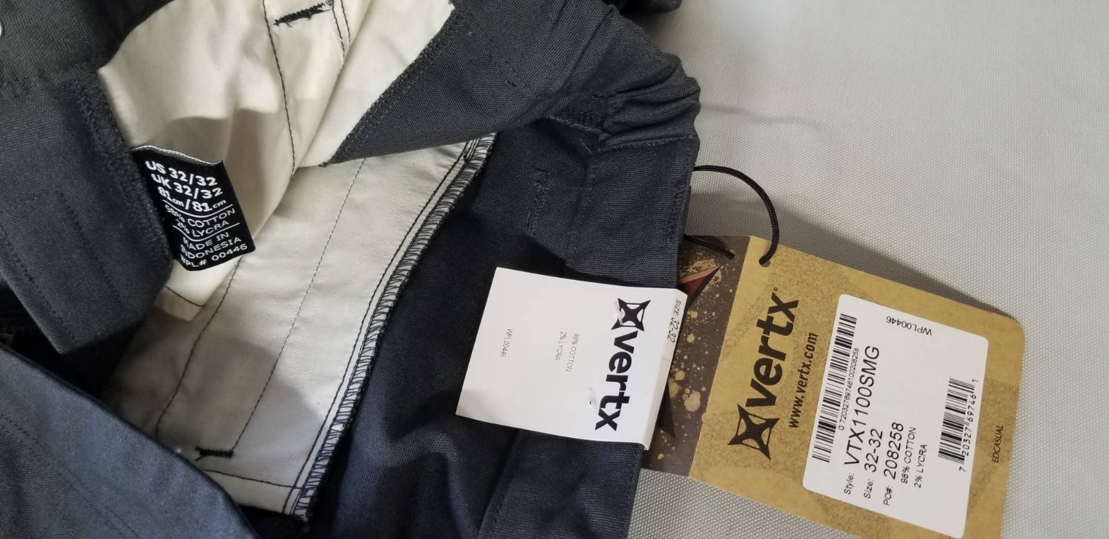 как выглядит VERTX Men ED Casual Regular Fit Cotton Chino Pants - 32x32 Gray VTX1100SMG фото