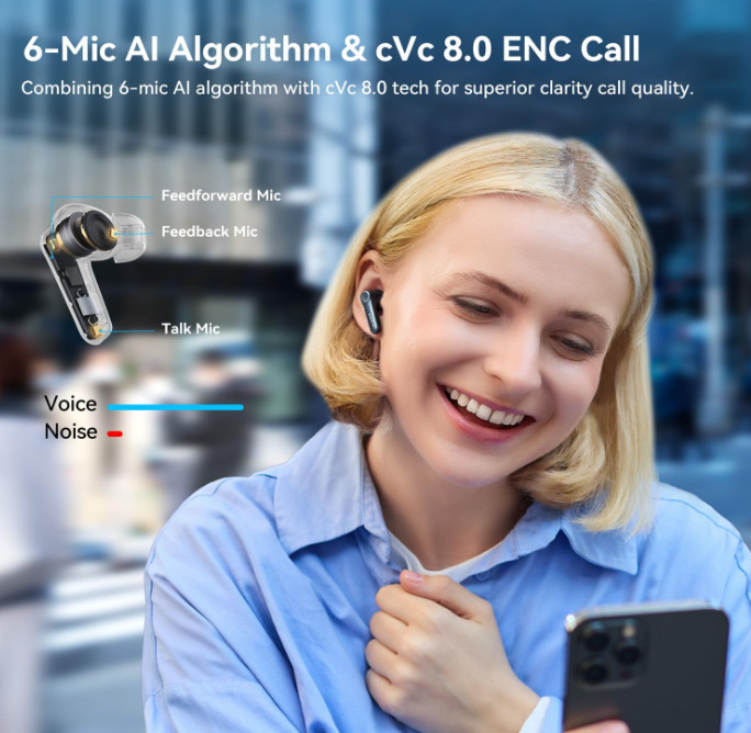 EarFun Air Pro 4 Adaptive Hybrid Noise Canceling Wireless Earbuds, 52H Playtime.