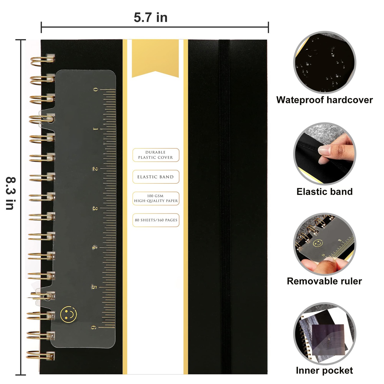 Spiral Journal A5, Graph Paper Notebook 160 Pages, 5x7 Grid, Black