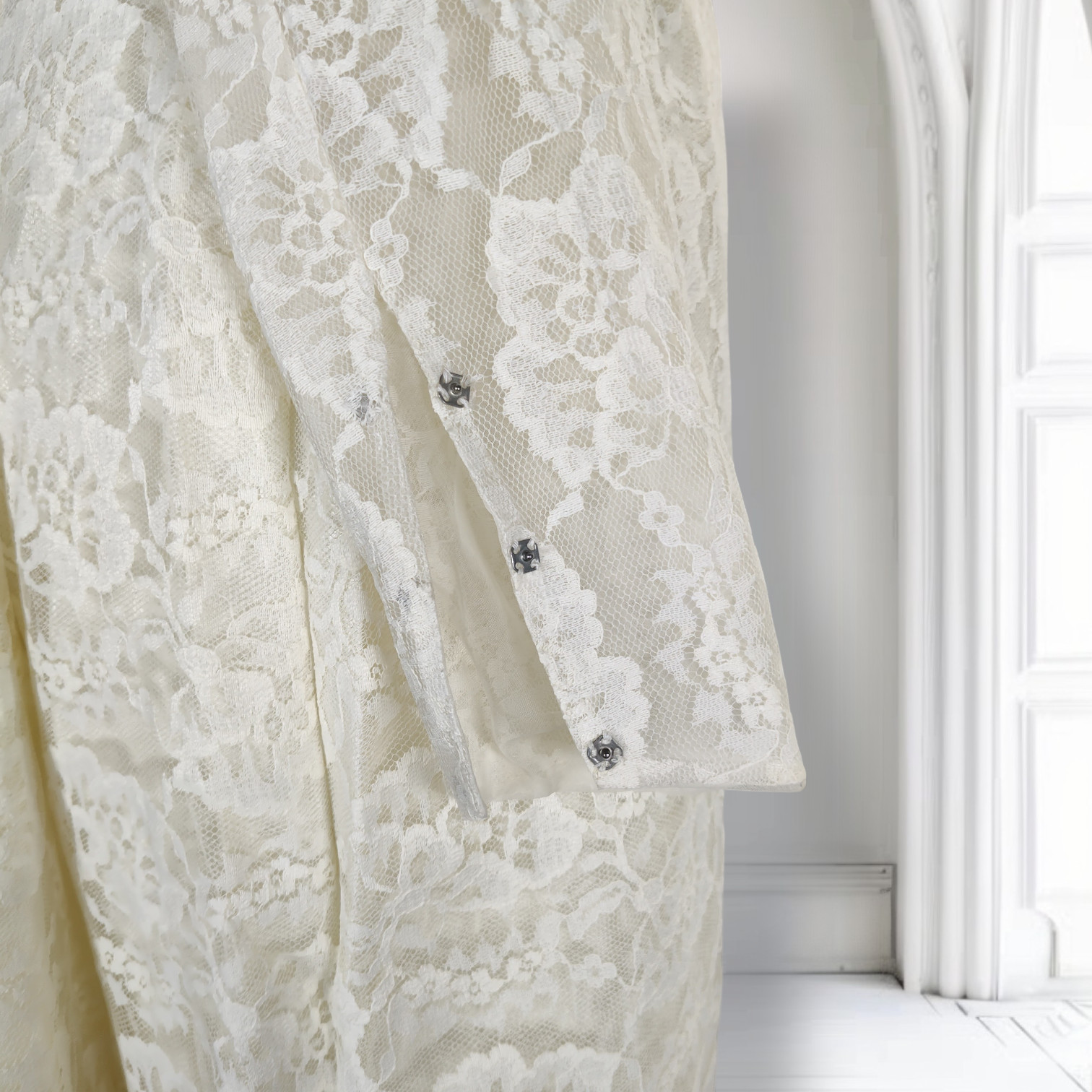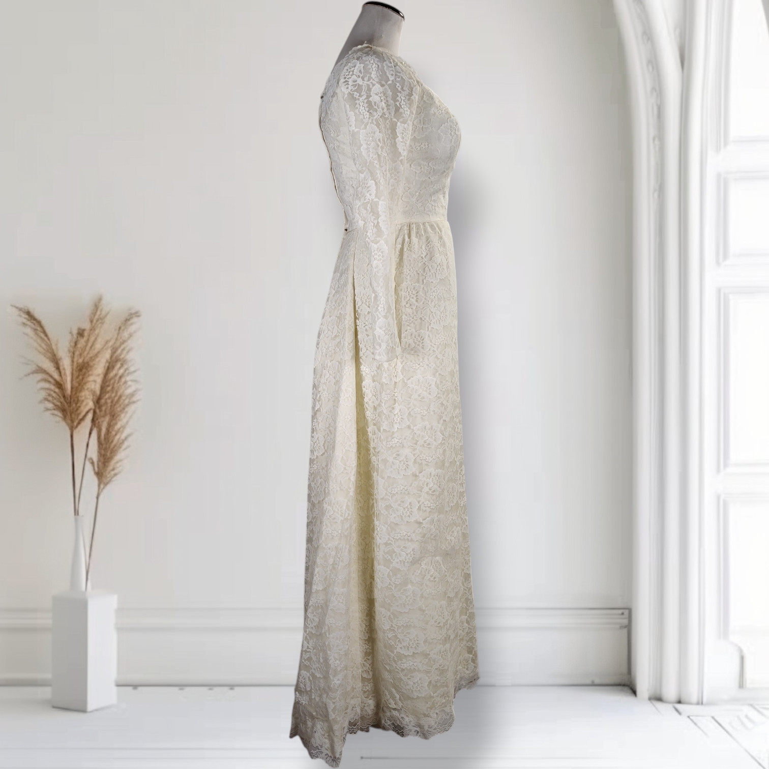 Vintage 50s 60s Ivory Lace Wedding Dress Long Sleeve Column Bridal S 4
