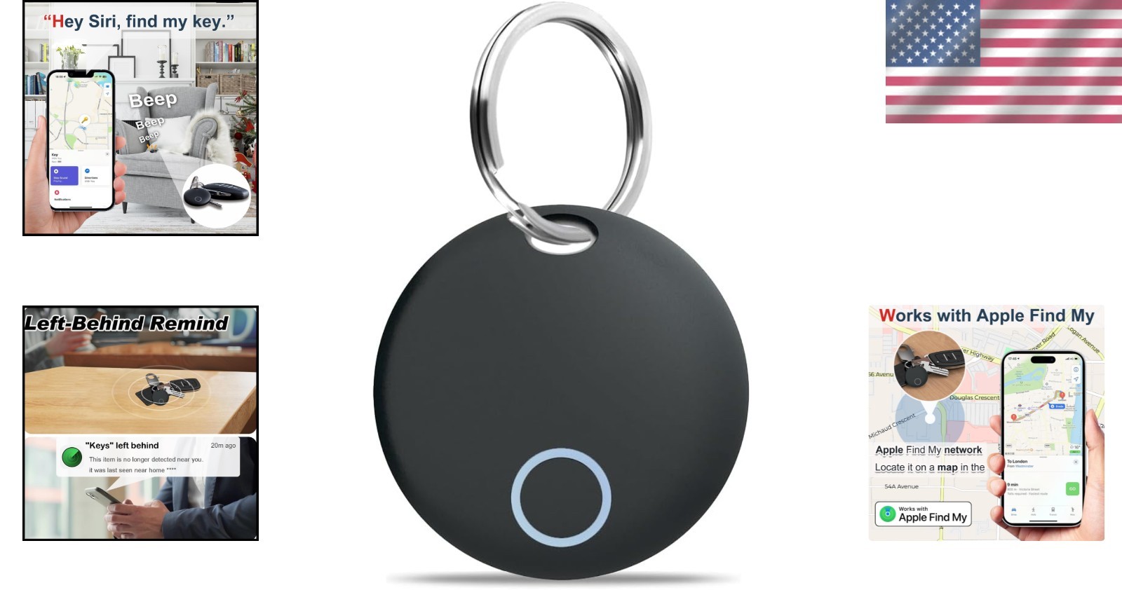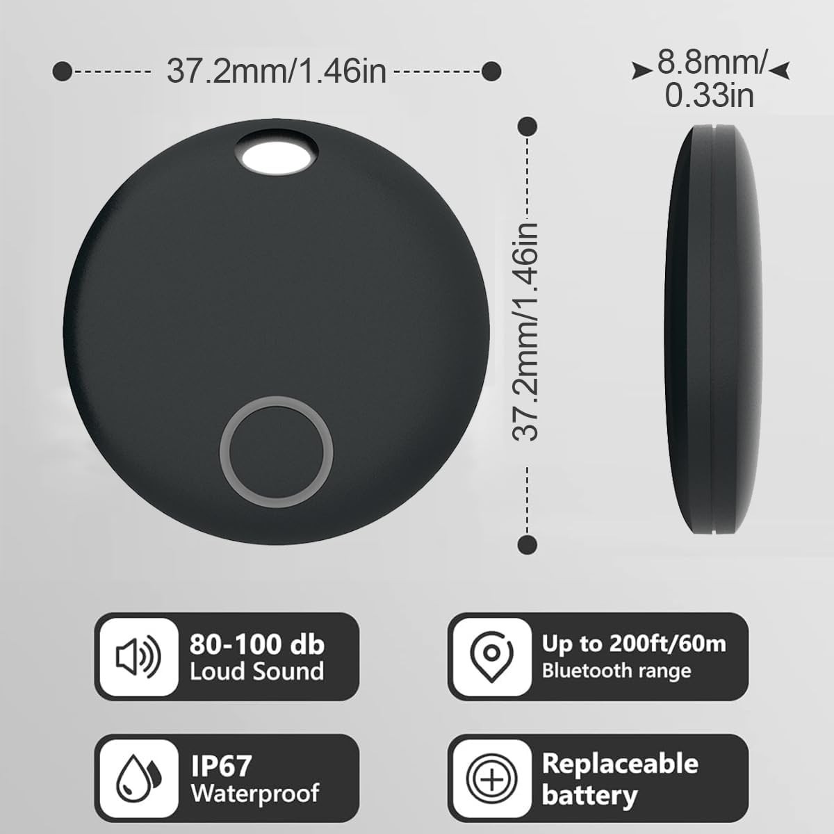 Waterproof Key Finder Tracker with Bluetooth for Easy Item Location - Black