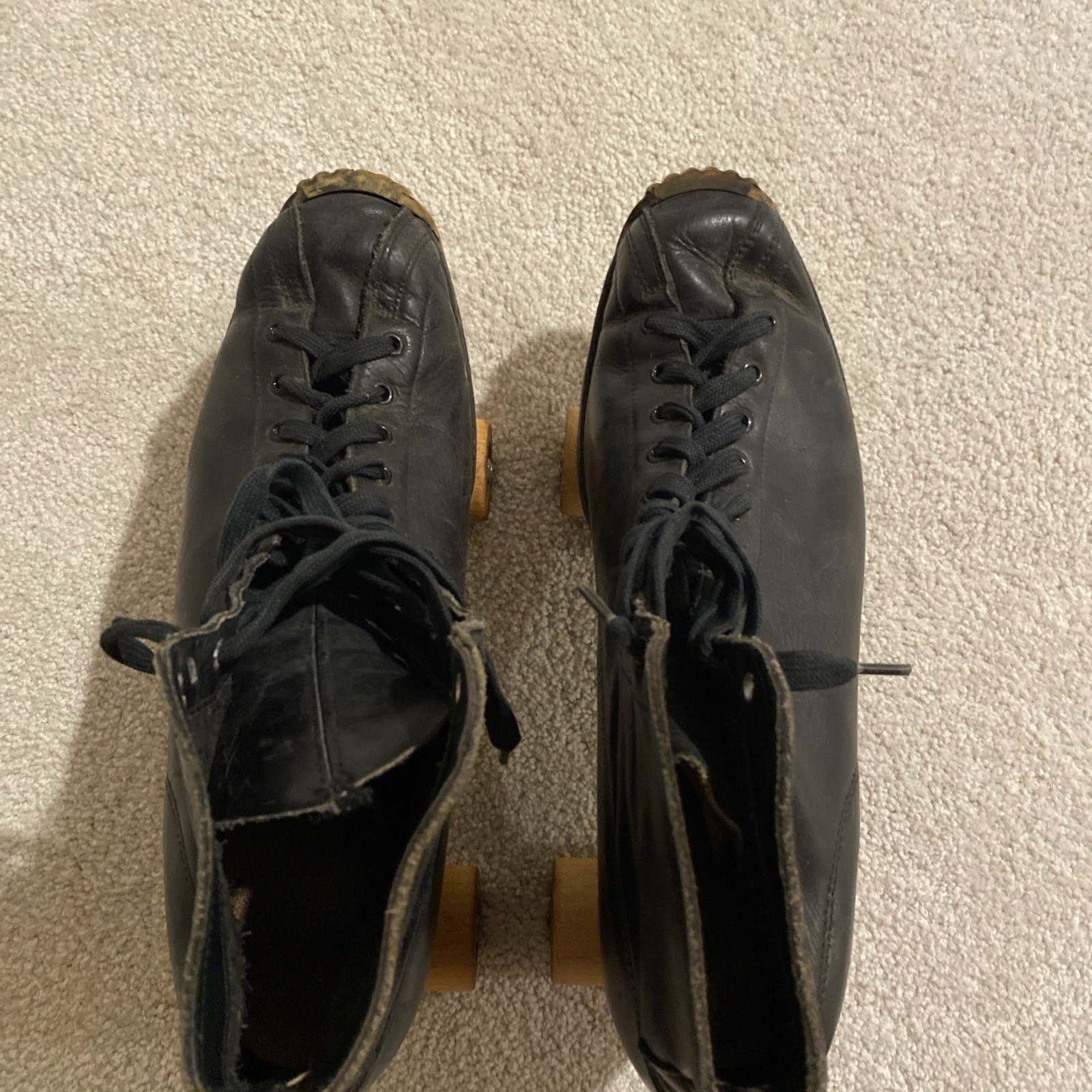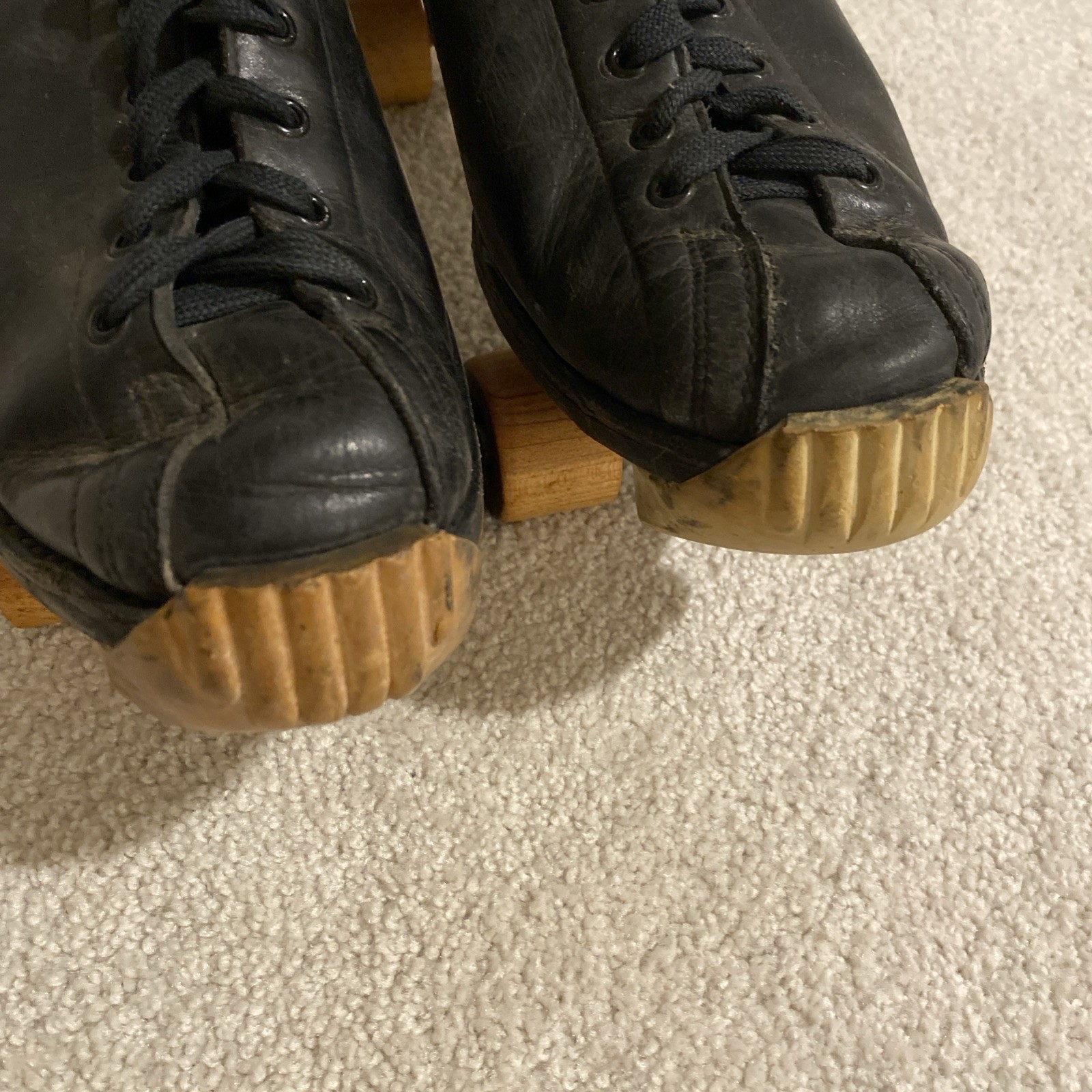 Vintage Chicago Roller Skates Size 8 Black Leather Wooden Wheels