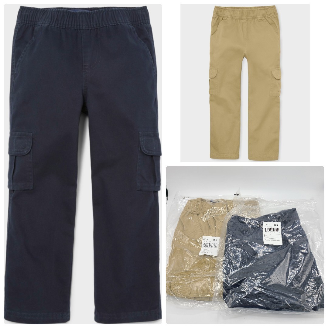 Children's Place Boys Pull On Cargo Pants Twill Navy Tan Flax 10 Bundle of 2