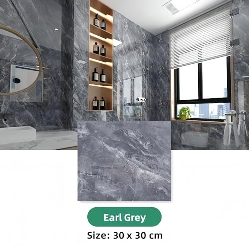 Premium Marble Effect Wall Tile Stickers - 30x30cm PVC SXP 30 Tiles Earl Grey
