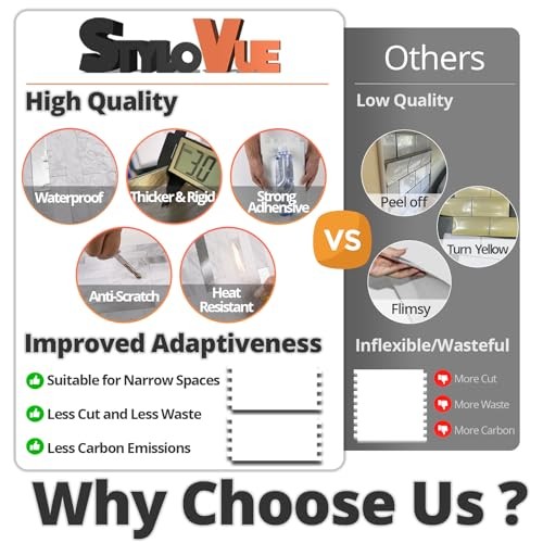 Sheets Peel and Stick Backsplash for Kitchen, 20 White Marble With Metal Silver