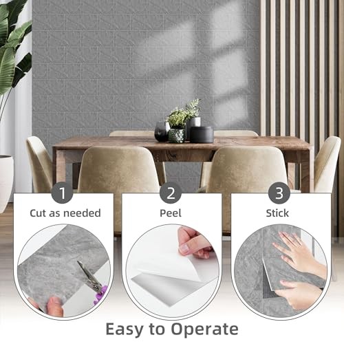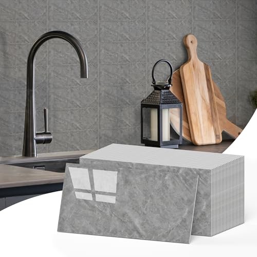 Peel and Stick Backsplash Wall Tiles, 4x8 PVC Marble Wall 50 Pack Gray