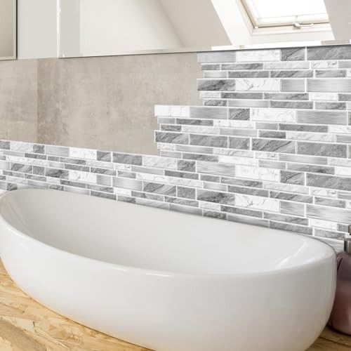 Peel-and-Stick Self-Adhesive Wall Tiles, 4.7 9.7-inch Kitchen Gray-White
