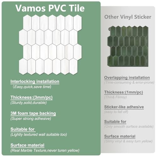 Long Hexagon Peel and Stick Backsplash Tile - Sheets 10 Dolomite Marble Look
