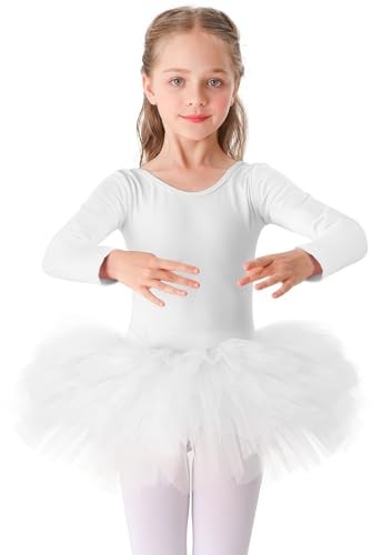 Girls Cotton Ballet Dance Dress Cute Tutu Skirted Leotard 10-11 Years White