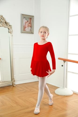 Ballet Leotards for Girls Ballet Dance Dresses Criss 4-6 Years Red Long Sleeve