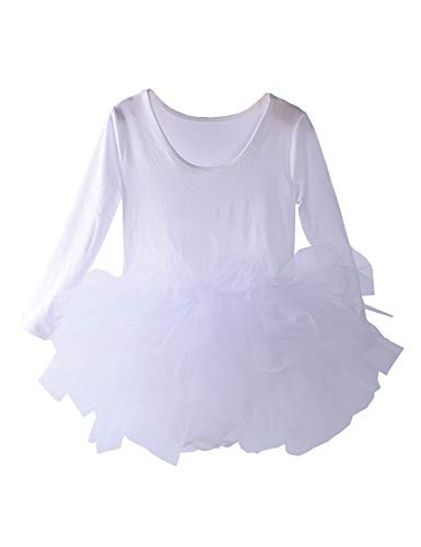 Girls' Camisole Dance Tutu Leotard with Fluffy 4 12-24 Months Long-white