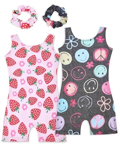 Gymnastics Leotards for Girls 2 Pack Sparkly Kids 4-5T Strawberry Smiley