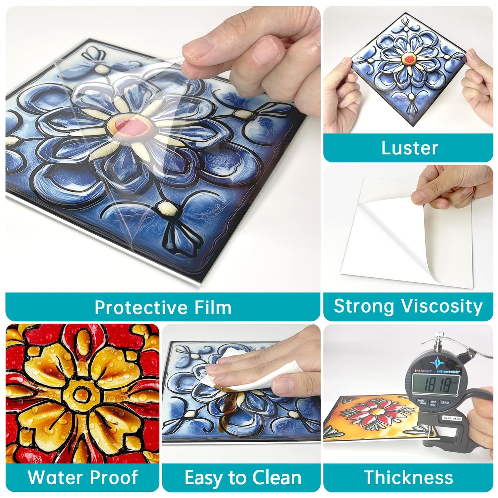 Peel and Stick Backsplash Tiles 12 Pack - 5.9x5.9 Inch Removable Decals for K...