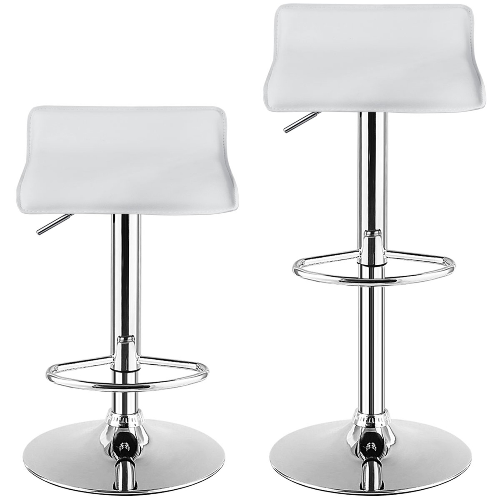 Set of 2 PU Leather Swivel Bar Stool Adjustable Kitchen Counter Bar Chairs White