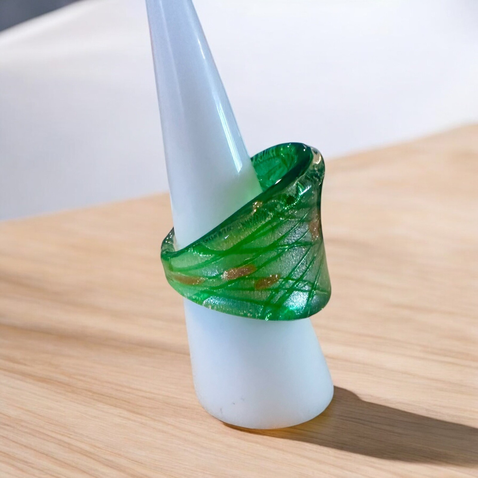 Handmade Glass Ring - Green and Gold - Measures as a 5.5
