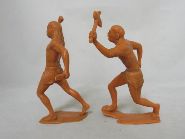 2 1964 Marx 6 - Caveman / Neanderthals Figures - Prehistoric Playset VG