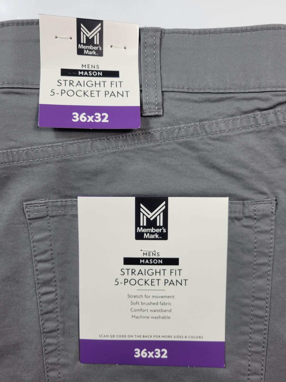 Member s Mark Mens Mason Pants Straight Fit Soft Brush Fabric Size 36x32 Gray