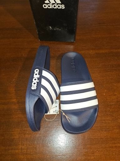 как выглядит New Adidas Adilette Shower Slides Kids Size 4 Black White Color фото