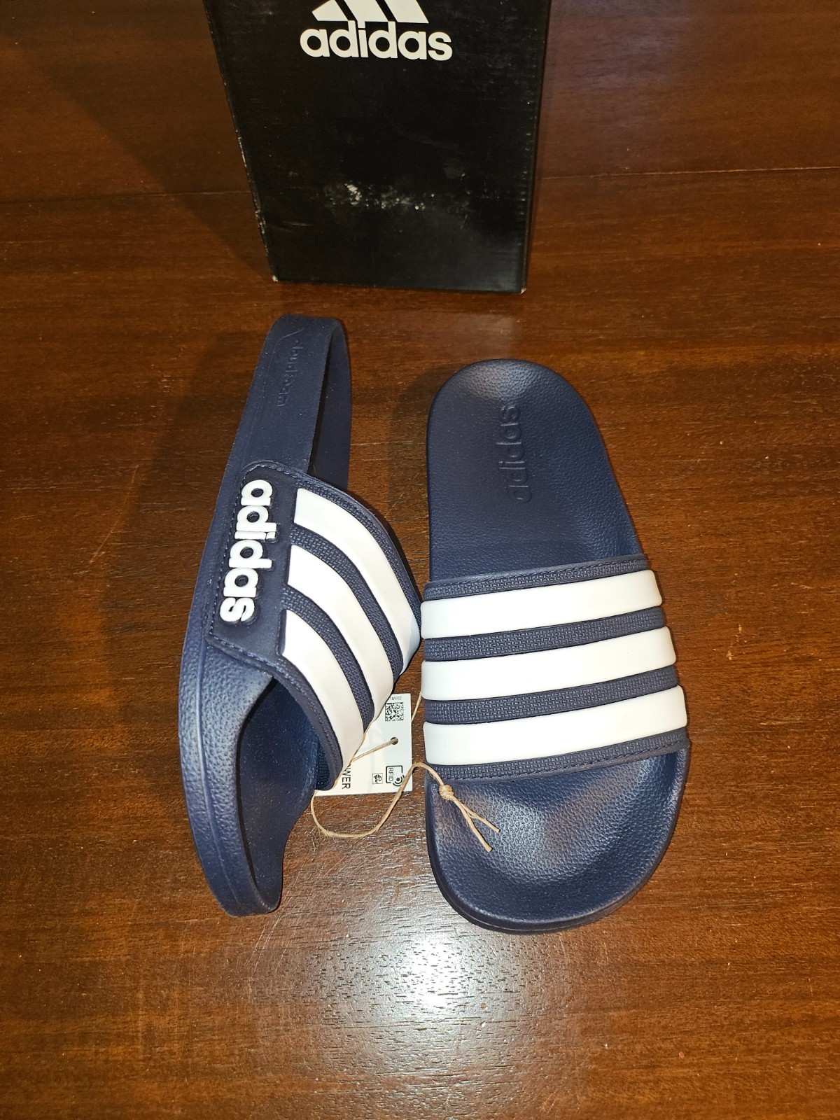 New Adidas Adilette Shower Slides Kids Size 4 Black White Color
