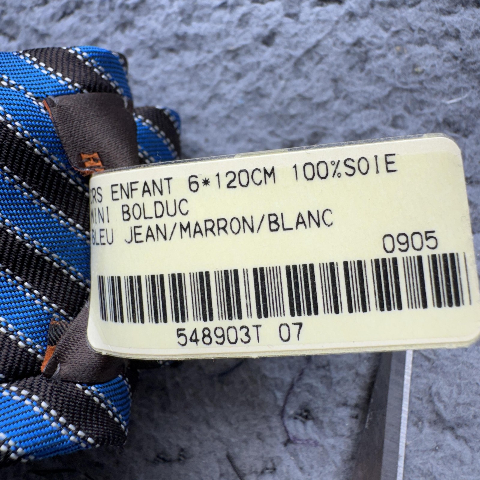 Hermes Neck Tie Boys One Size Blue Brown Mini Bolduc Striped Silk Paris France