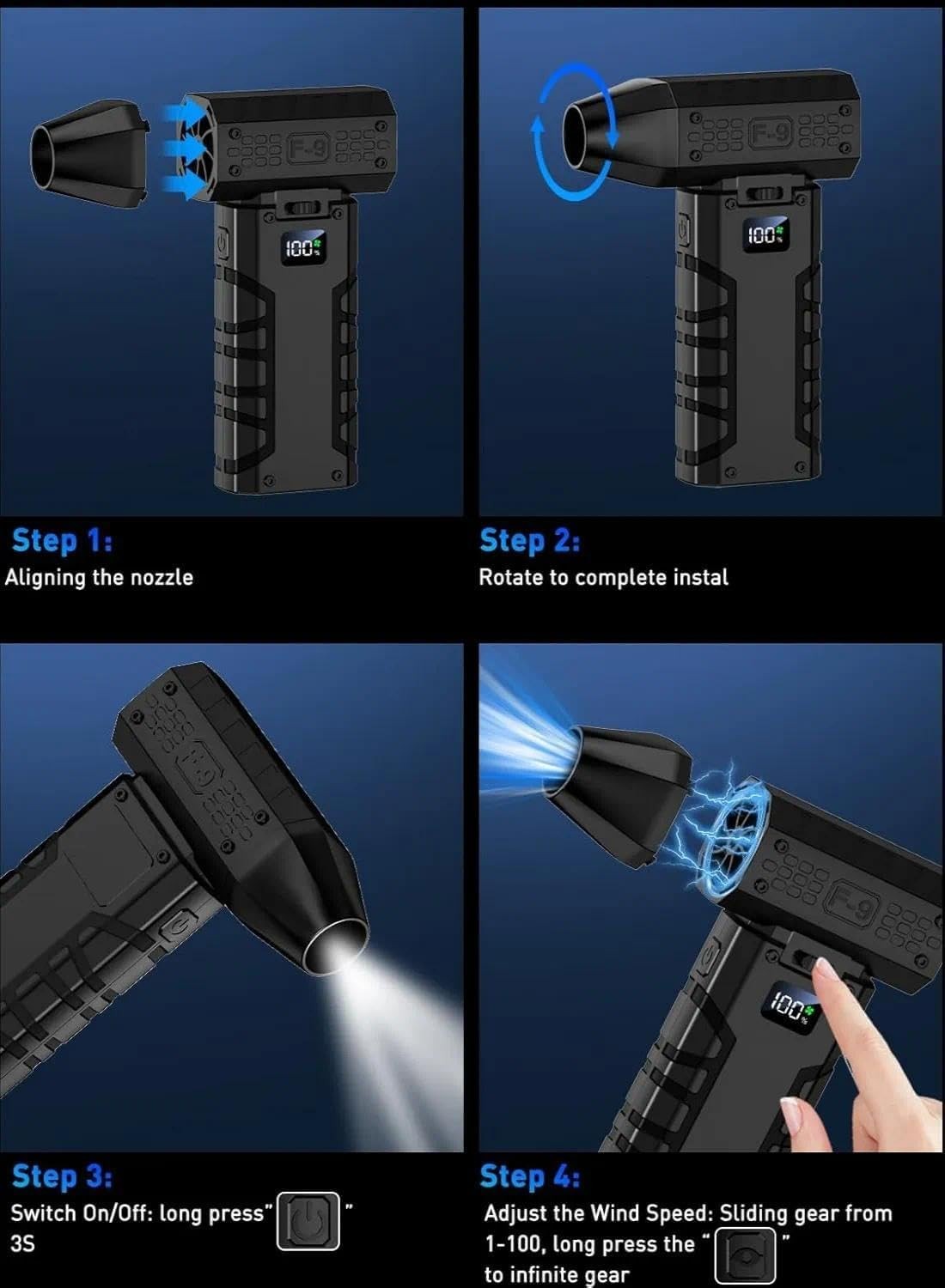 • Cordless Electric Air Duster 130K RPM for Computer Keyboard Car Home Cleaning