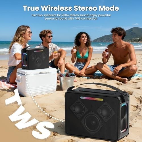 100W Peak Bluetooth Speaker - Waterproof Portable Boombox with LED Lights, Deep