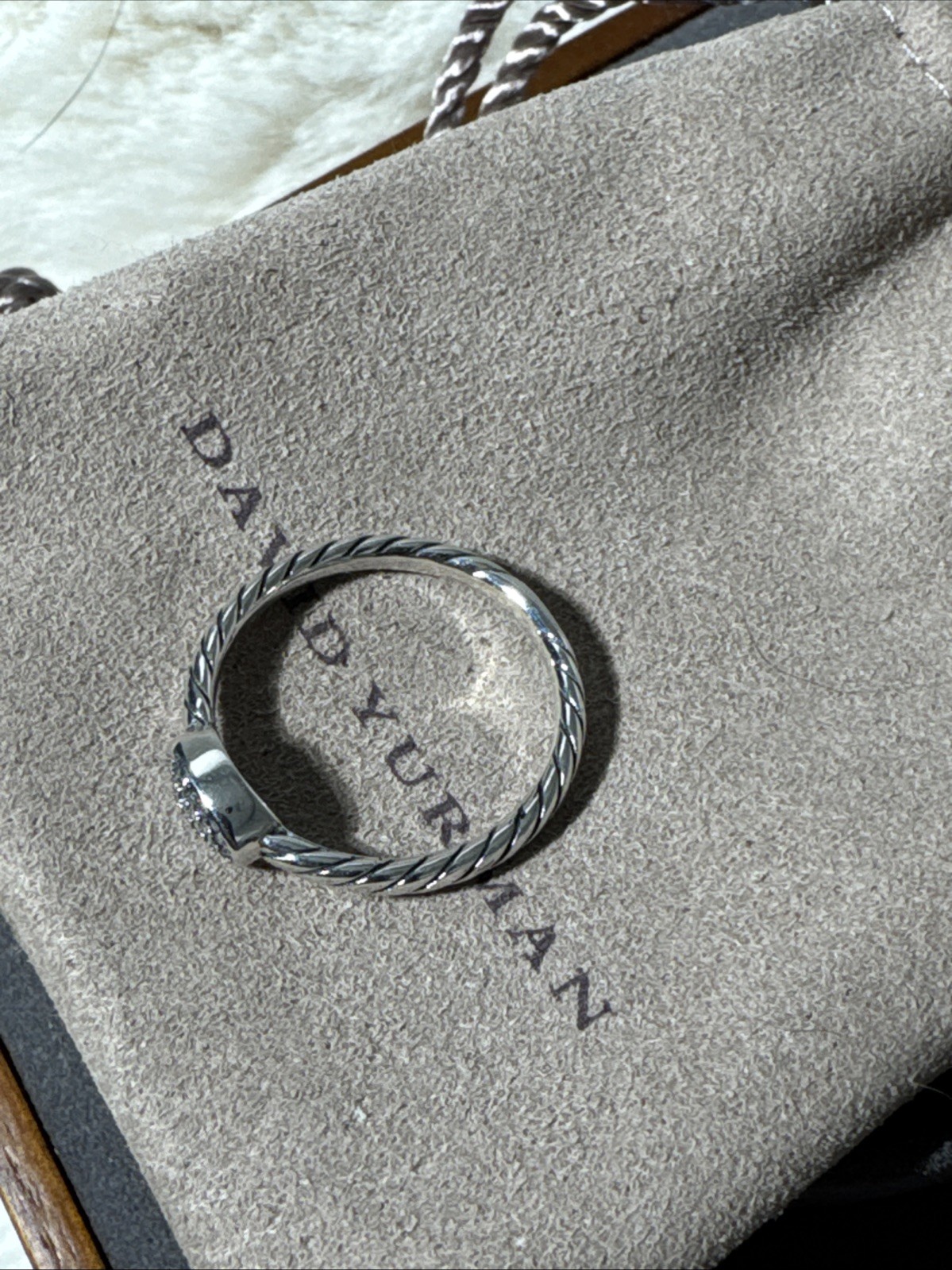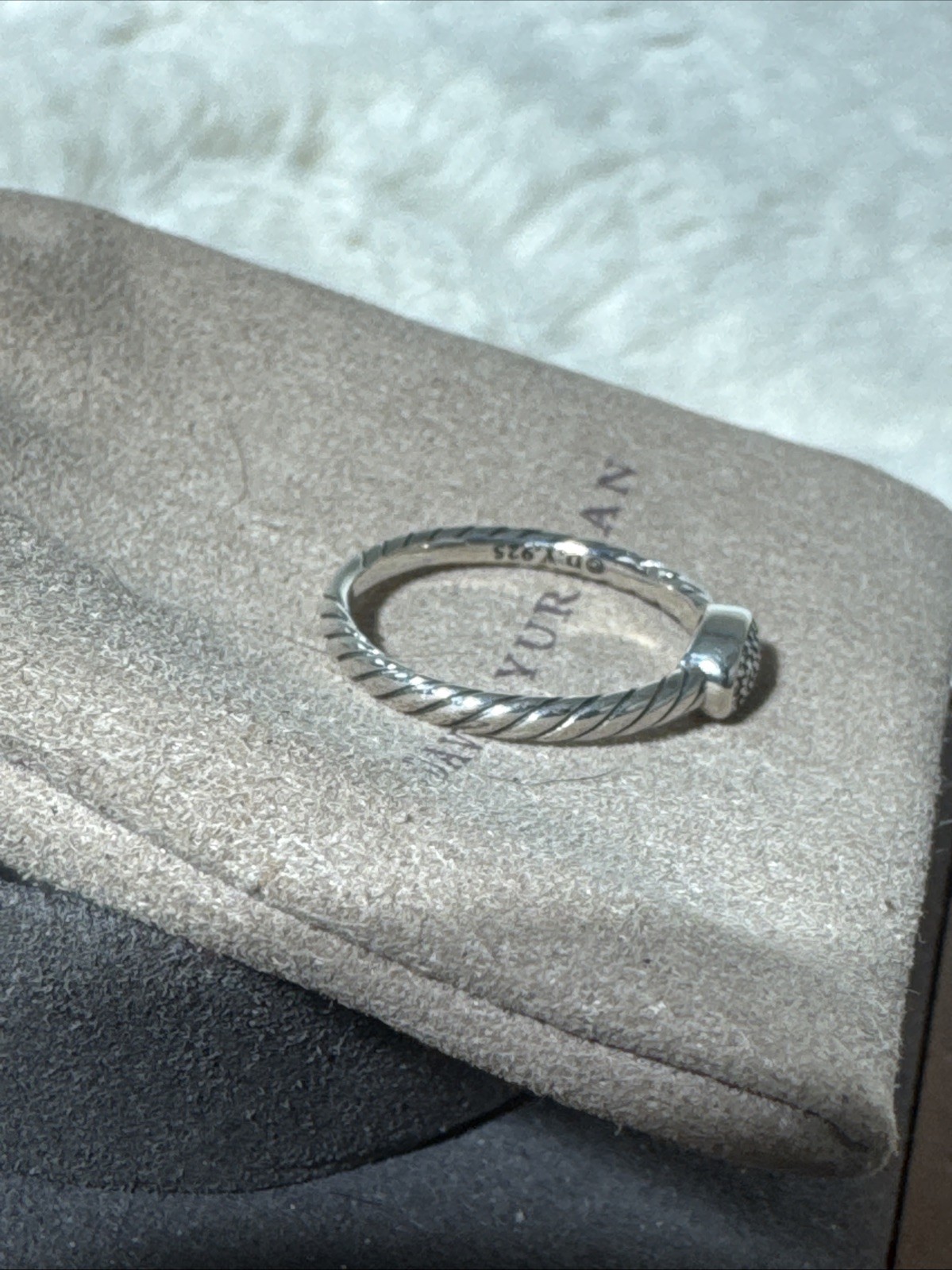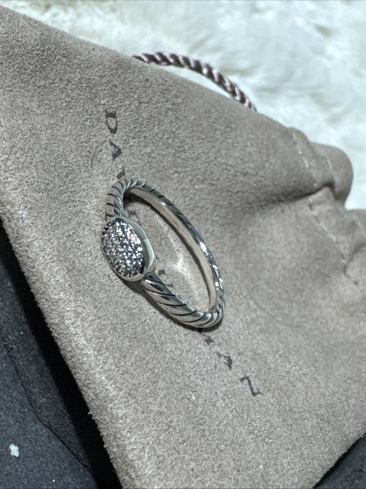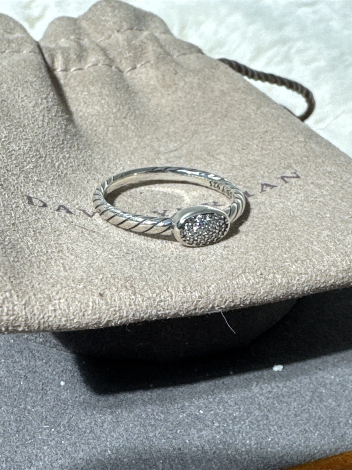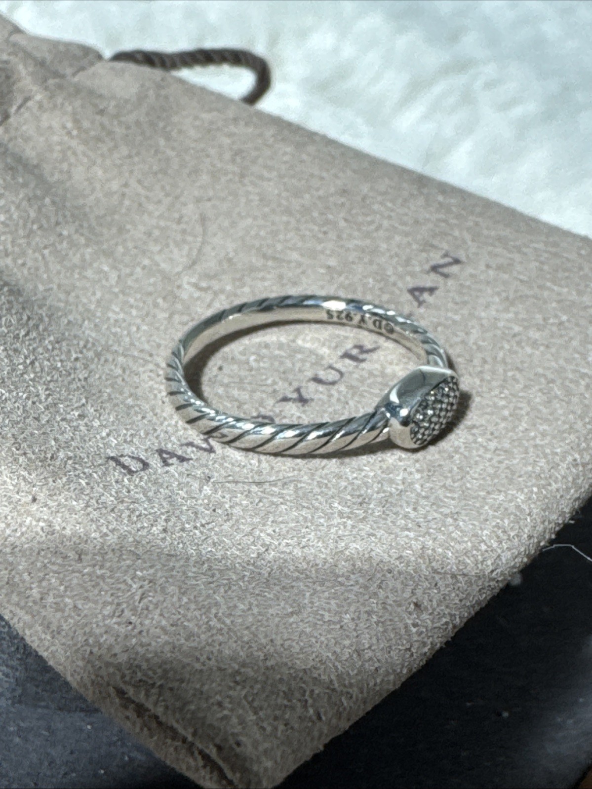 как выглядит David Yurman Rope Sterling Silver Petite Pave Diamond Ring -Size 7 -925 DY- фото