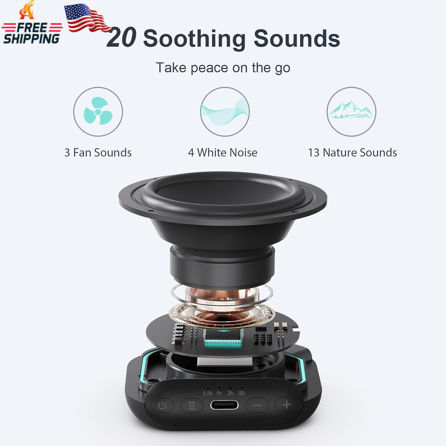 Mini Portable White Noise Machine 20 Sounds Battery Powered for Sleep and Travel