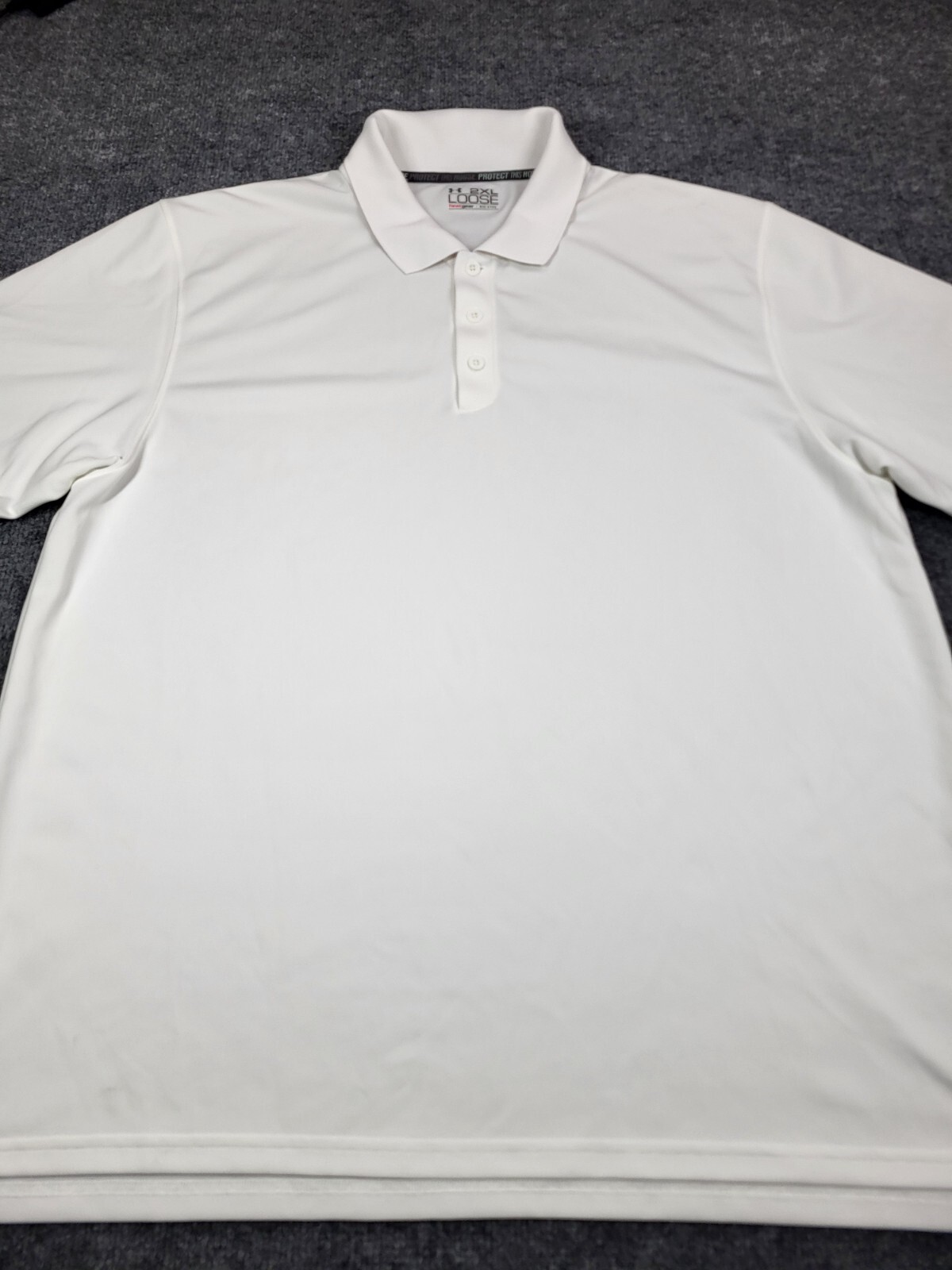 Under Armour Heat Gear Loose Golf Polo Short Sleeve Shirt White Men 2XL XXL