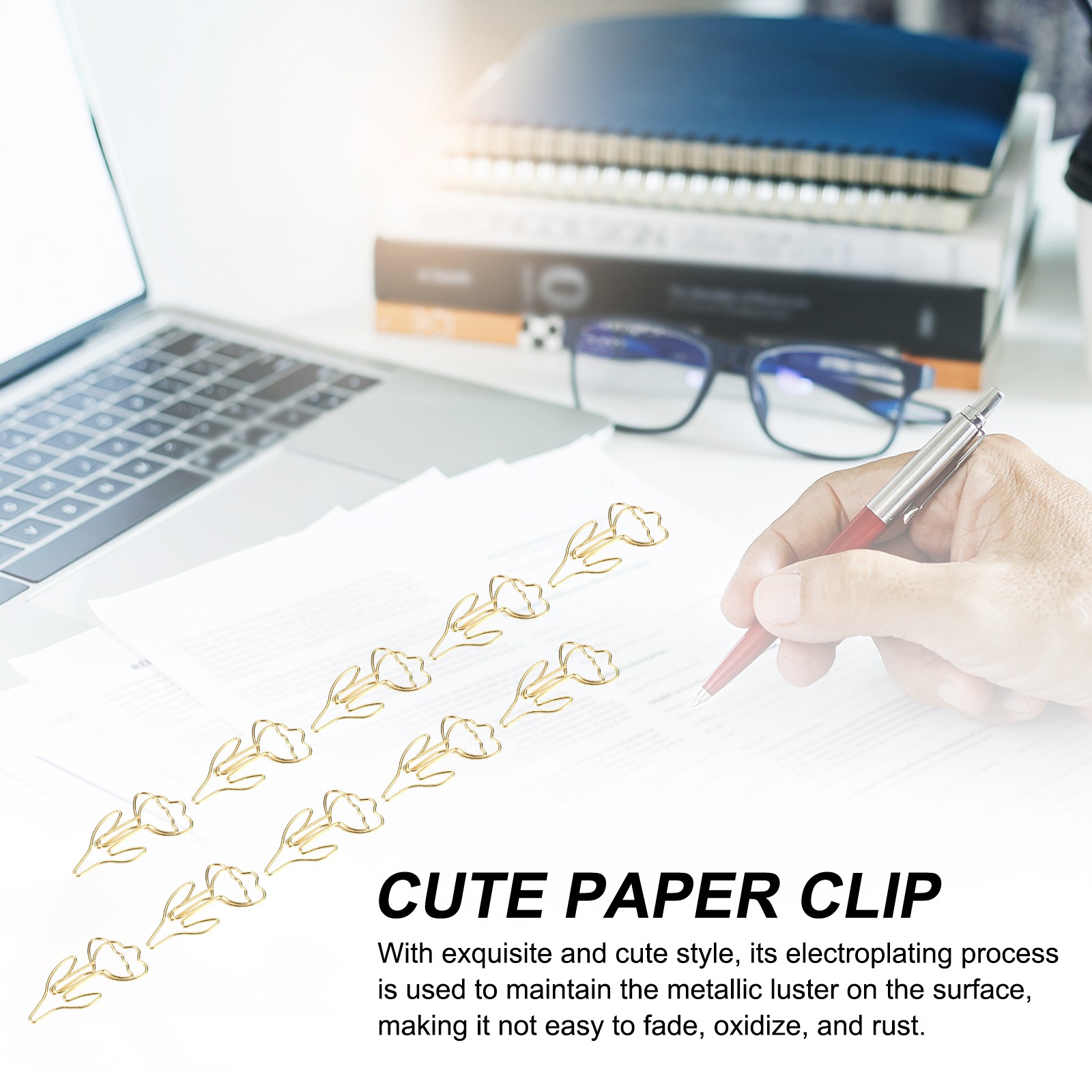 60pcs Cute Flower Shaped Paper Clips for Fun Supplies, Gold