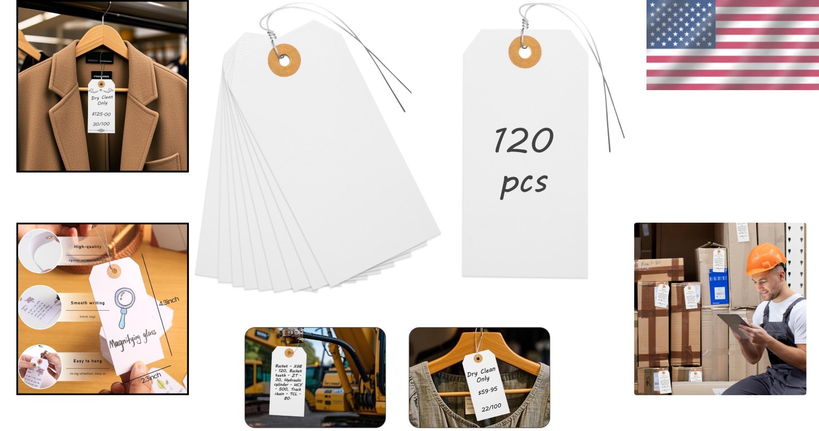 White Pricing Tags with Wire, 120 PCS Heavy Duty, Adjustable, Versatile for...