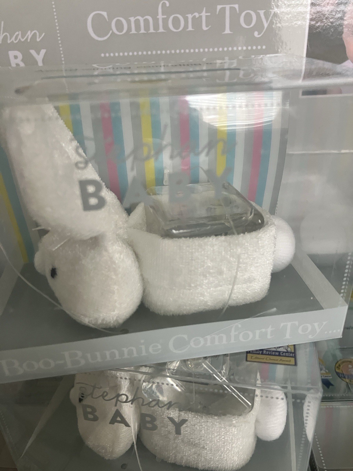 как выглядит New Stephan Baby Boo-Bunnie White Plush Comfort Toy w/ Boo Cube Soothing Aid. фото